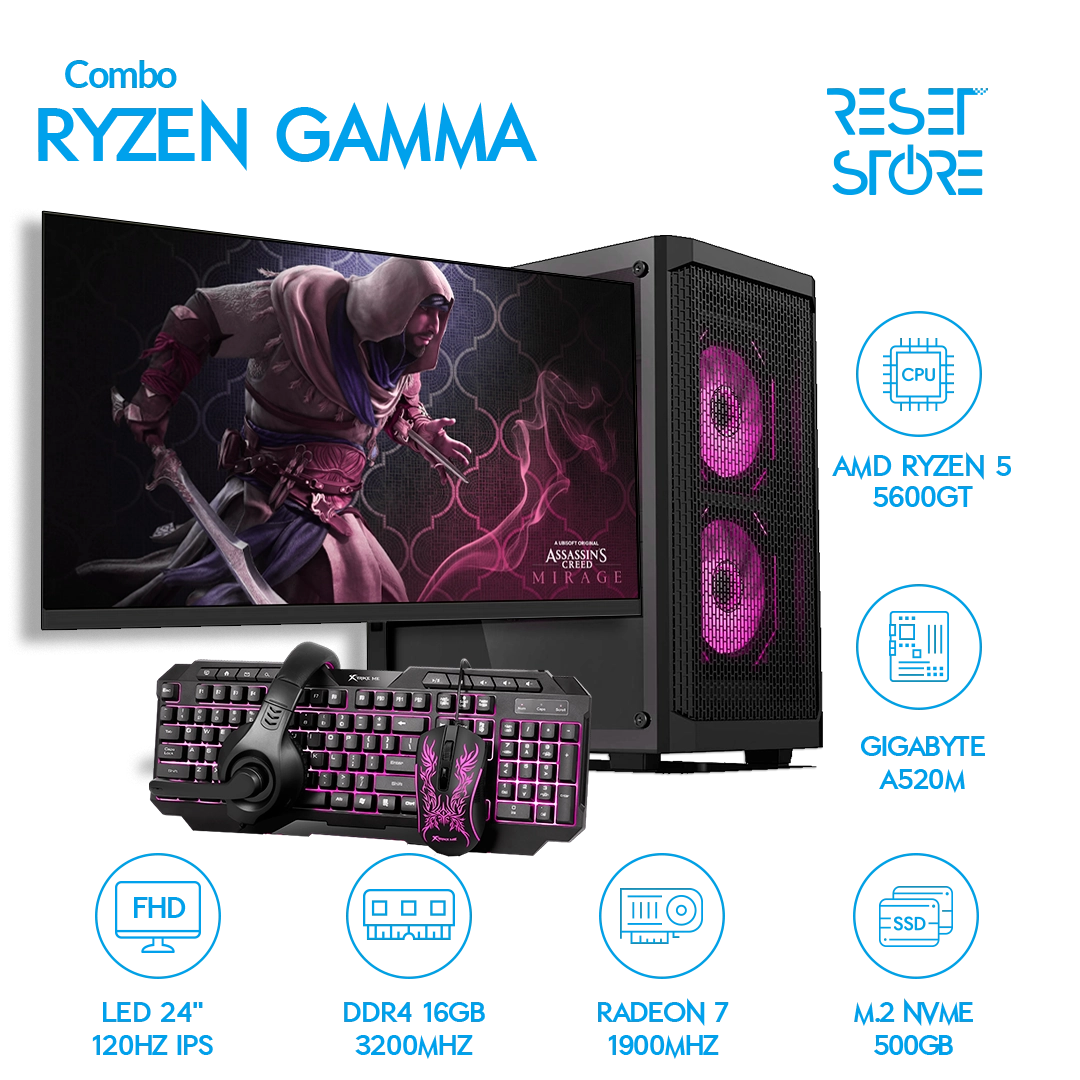 El Combo Ryzen Gamma + Led 24″ 120Hz cuenta con un procesador que incluye seis núcleos, una velocidad de reloj base de 3,9 GHz y siete núcleos de GPU. Plataforma: Boxed Processor. Familia de productos: AMD Ryzen™ Processors. Línea de productos: AMD Ryzen™ 5 5000 G-Series Desktop Processors with Radeon™ Graphics. N.° de núcleos de CPU; 6. N.° de subprocesos: 12. Reloj de aumento máx.: Hasta 4.4GHz. Reloj base: 3.9GHz. Caché L2 total: 3MB. Caché L3 total: 16MB. TDP/TDP predeterminado: 65W. AMD Configurable TDP (cTDP): 45-65W. Processor Technology for CPU Cores: TSMC 7nm FinFET. Desbloqueados: Sí. Paquete: AM4. Solución térmica: Wraith Stealth. Temp. máx.: 95°C. Compatible con SO: Windows 11 – Edición de 64-bits.
