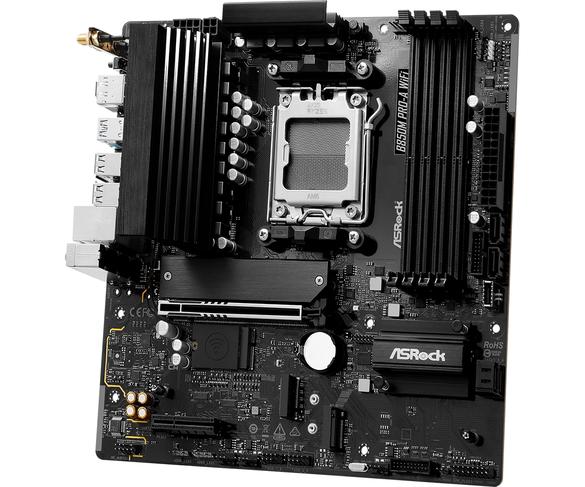 Empezando por el procesador, el AMD Ryzen 5 7600 ofrece 6 núcleos y 12 hilos con velocidades que alcanzan los 5.1GHz, proporcionando rendimiento sobresaliente en multitarea, gaming moderno, productividad y tareas exigentes sin perder eficiencia energética. Acompañándolo, la board ASRock B850M PRO-A WIFI soporta hasta 256GB de memoria, integra tecnología PCI-Express 5.0 preparada para futuras actualizaciones, estabilidad de energía optimizada, múltiples puertos de conectividad y WiFi integrado para una experiencia completa y lista para usar.