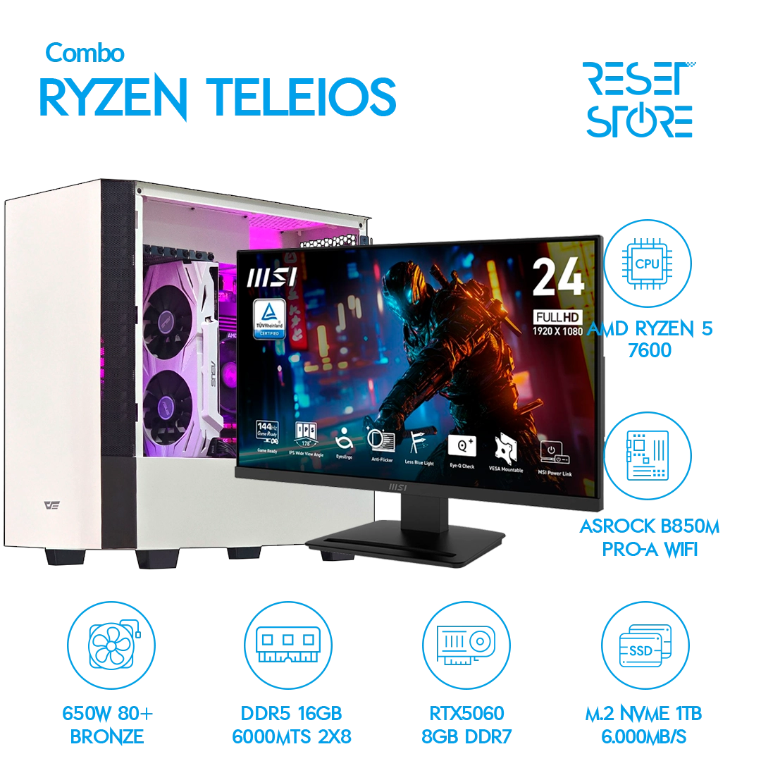 Combo Ryzen Teleios – R5 7600 + RTX5060 + 24″ 144Hz